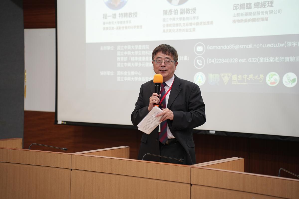 國立中興大學動物科學系陳彥伯副教授、山酮新藥開發股份有限公司邱錫臨總經理,以及國立中興大學生物醫學研究所林季千特聘教授兼所長等,共同聚焦高齡營養、保健食品、益生菌應用與植物藥開發等多元議題,展現跨領域合作的豐碩成果。