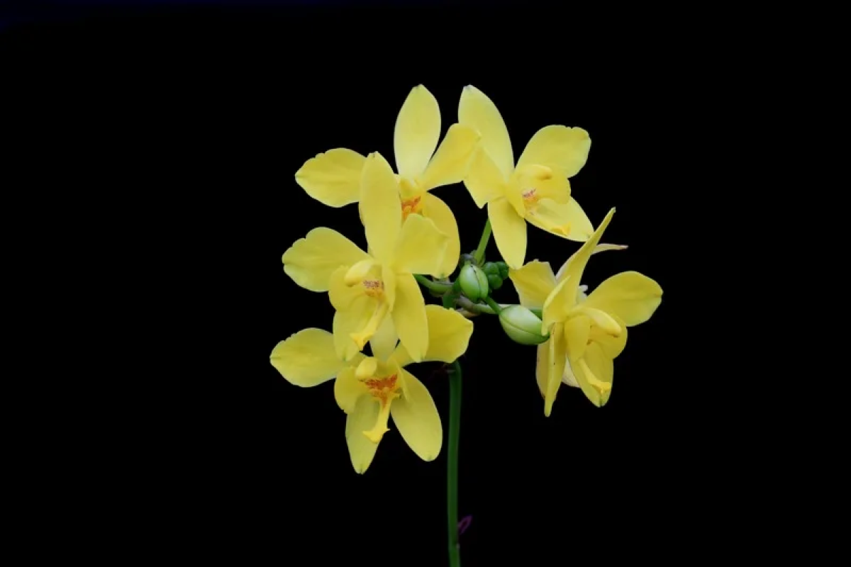 台南農改場育成黃花苞舌蘭「台南五號」,攜手中興大學推廣景觀新品種。(記者黃文記攝)