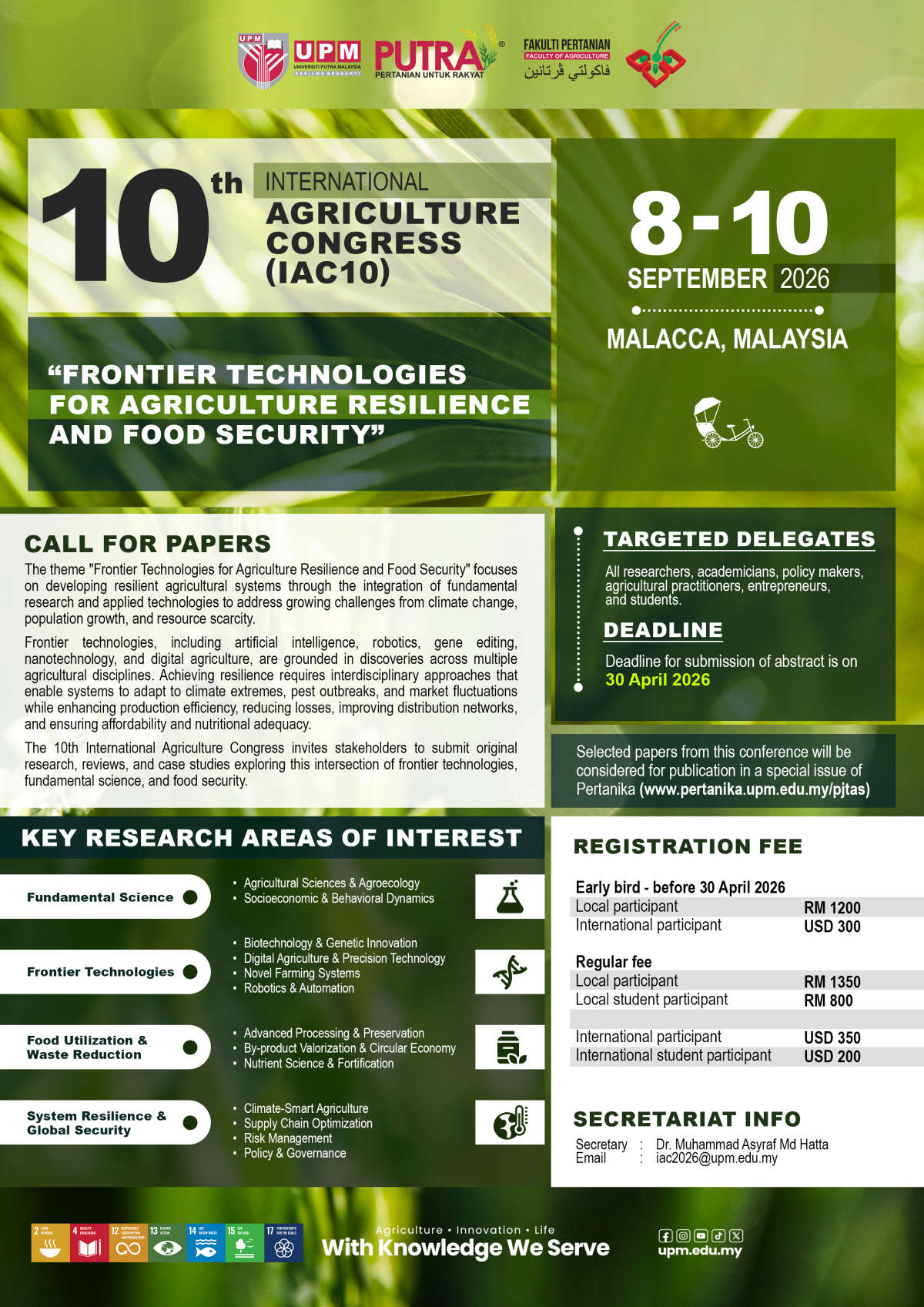 【Call for paper presentation】10ᵗʰ International Agriculture Congress (IAC10) and 25ᵗʰ Asian Association of Agricultural Colleges and Universities Biennial Conference (AAACU25)