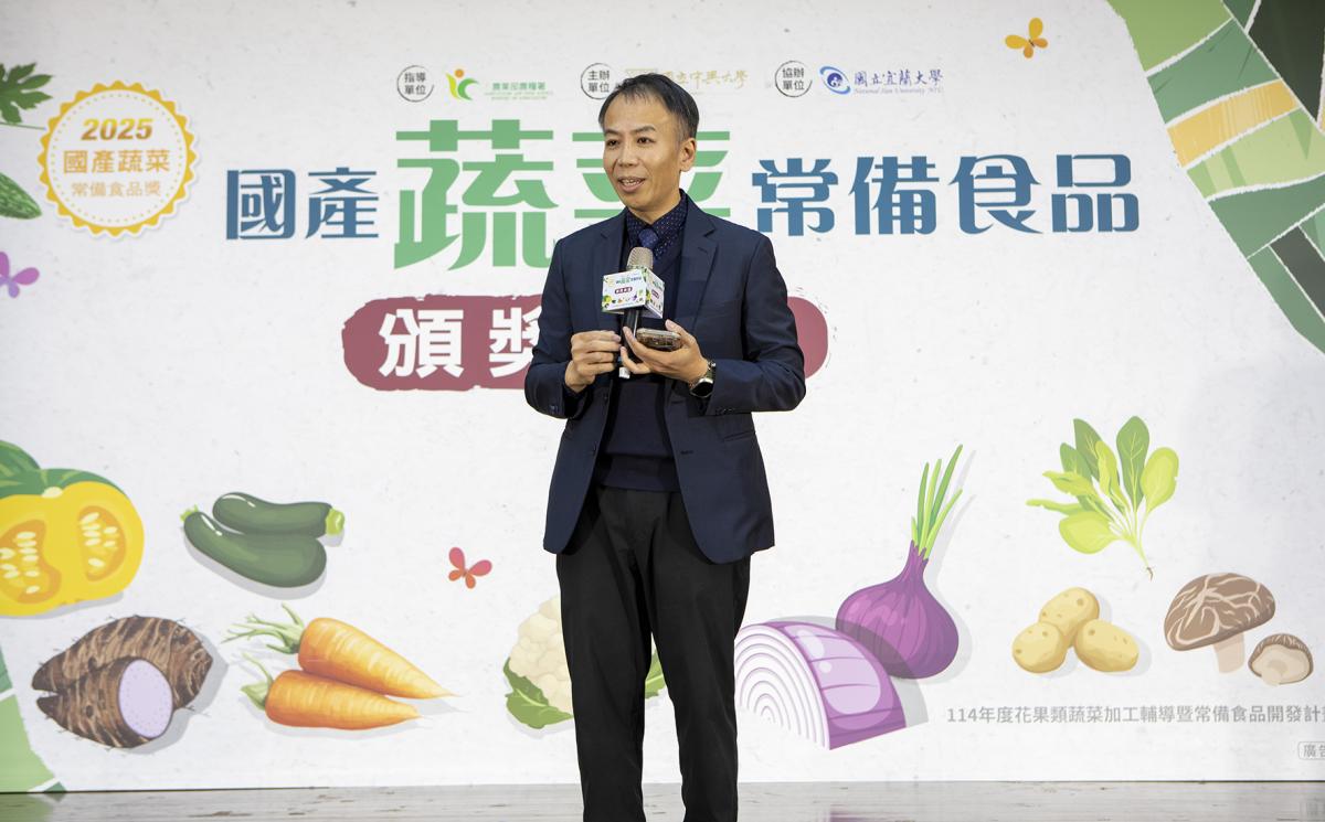 謝昌衛教授表示,為穩定國內蔬菜供應與擴增常備食品的發展,持續輔導農民團體及加工業者導入冷鏈與加工技術,將新鮮蔬菜原料轉化為多樣化的常備食品。此舉不僅提升農產價值與附加效益,也有助於延長產品保存期限,兼顧食安與營養,讓國產蔬菜在市場上展現更高競爭力。鼓勵業者朝便利化、健康化及低碳永續方向發展,並透過科研能量與產學合作,建立完整的產銷體系,讓國產蔬菜不只是季節性作物,更成為消費者日常生活中安心、美味的選擇。