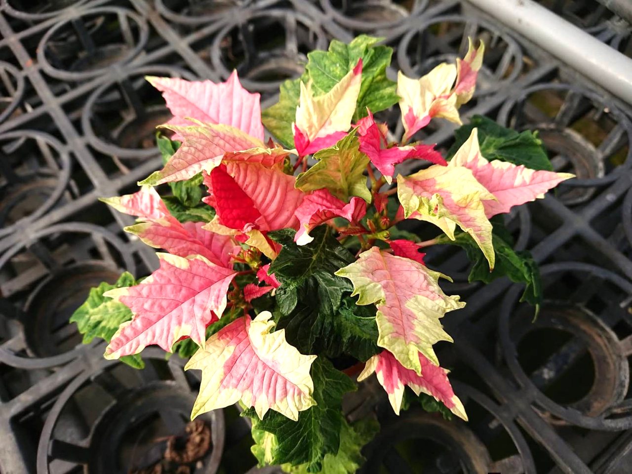 所以你看到的紅、粉、黃、白各種聖誕紅,差別不只是品種或「染色」——而是它們體內那條「上色流水線」開工的程度不一樣,才讓苞葉變得這麼繽紛。