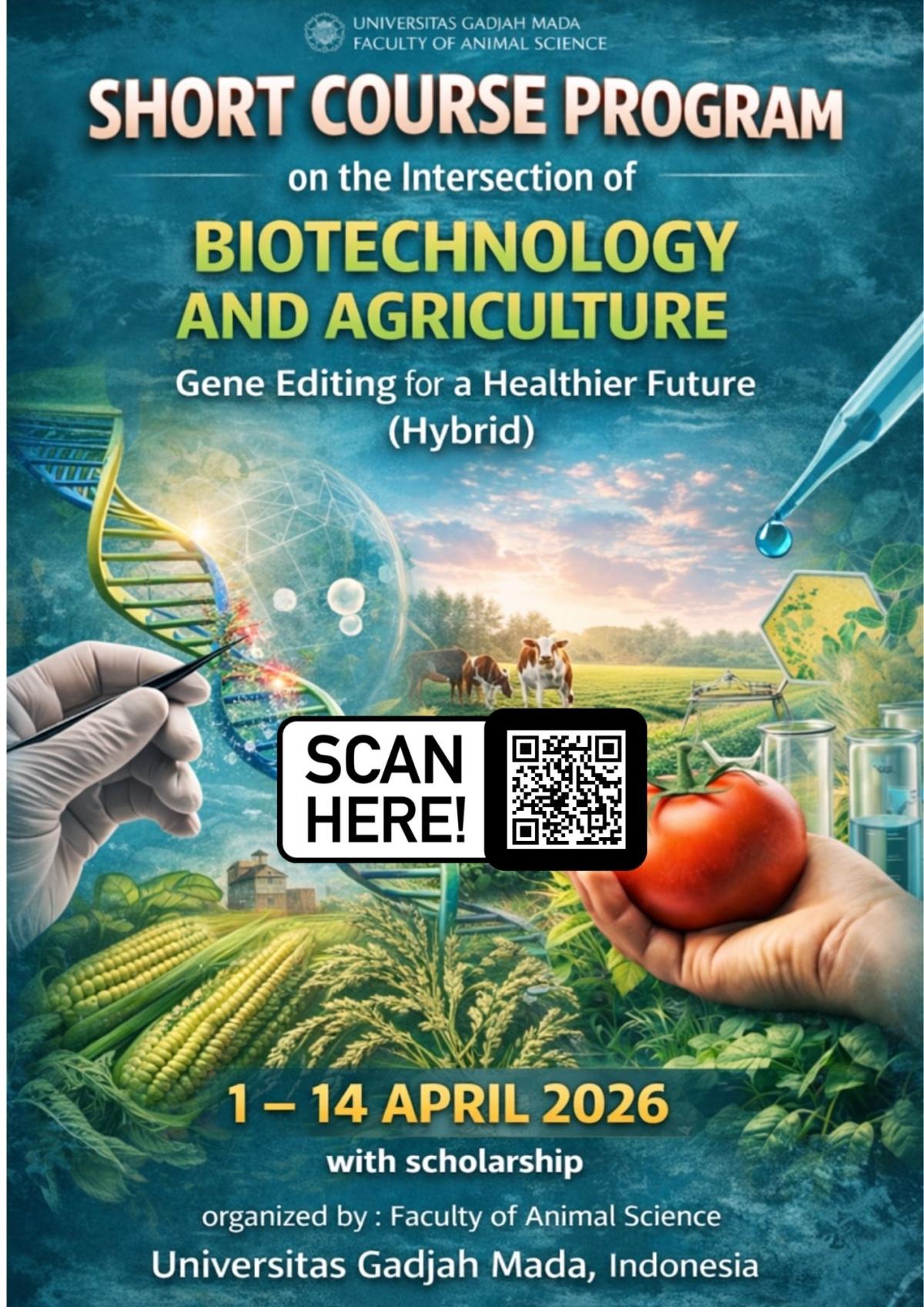 The program aims to enhance participants’ understanding of gene editing technologies and their applications in agriculture and livestock systems, contributing to sustainable development and a healthier future. It combines online academic sessions with onsite activities at Universitas Gadjah Mada, Yogyakarta.